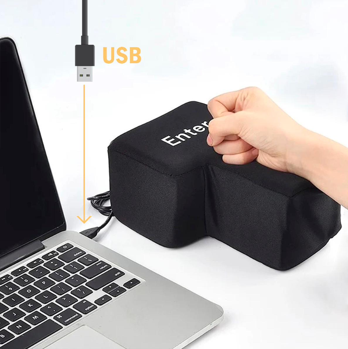 Convierte la ira en acción productiva: cada golpe envía un Enter real. Canalizas tu frustración y sigues trabajando sin perder el control.